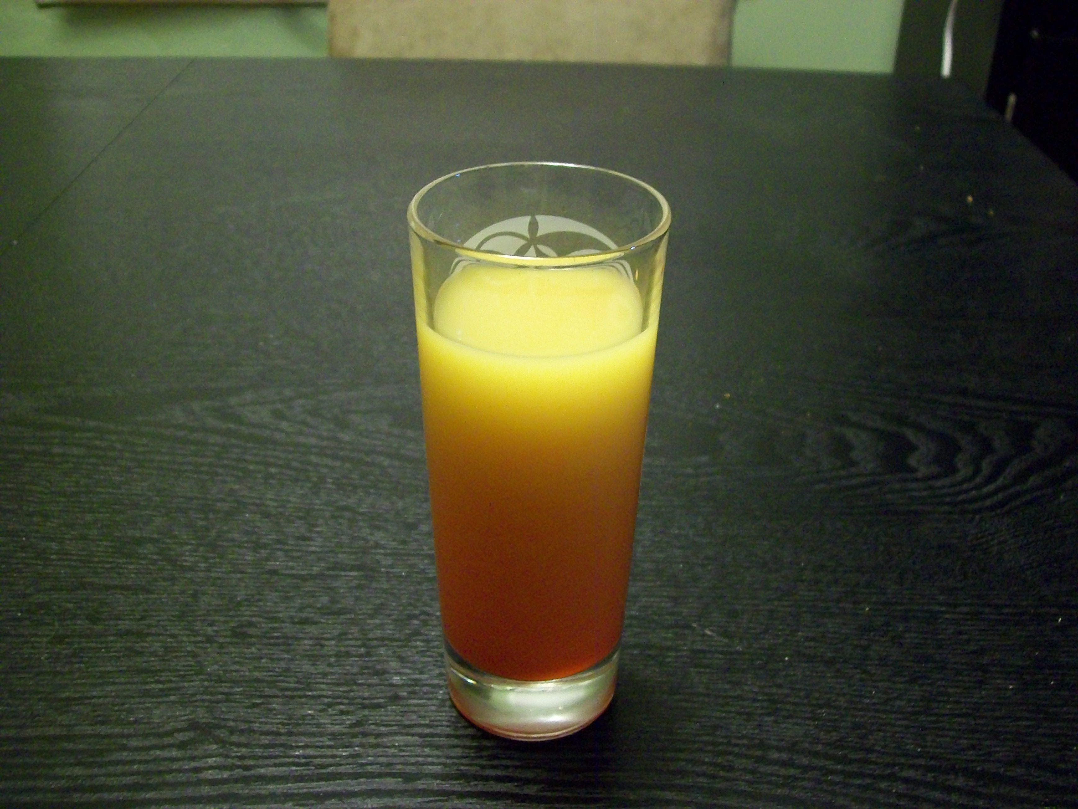How I like it: Some recipes call for less grenandine (up to a tablespoon) but I use a 1/2 ounce. Use more or less grenadine to suit your taste. Interestingly enough, I’ve never tried this drink before. I’ve had a Tequila Sunrise but not this. It turned out rather well, though. Maybe I’ll stump a bartender with it sometime. As for the photo, you’ll notice a Celtic design visible on the far side of the glass I used which came as a set of two with a bottle of Irish Mist.