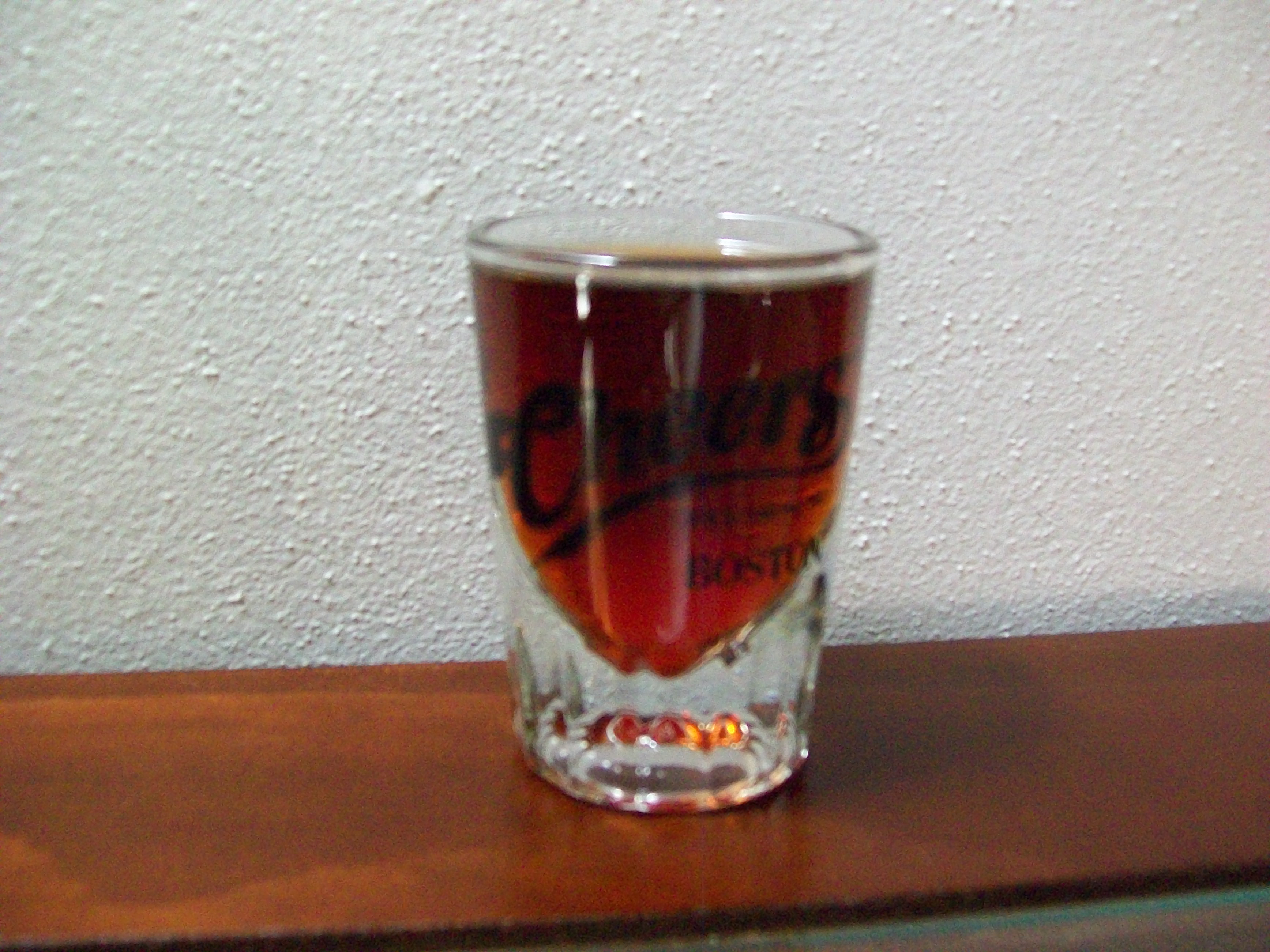 Drop a maraschino cherry in your favorite shot glass. Add in about a tablespoon of grenadine. Then, in a shaker over cracked ice, pour 1 ounce of kahlua, 1 ounce amaretto, and 1/2 ounce of white crème de menthe. Shake and then strain into your shot glass. This recipe should yield two shot glass servings.