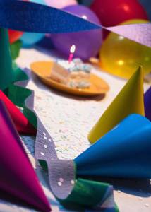 Colorful streamers, party hats, and a lone candle on a slice of cake. A celebration gone wild or something more sinister?