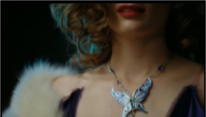 The search for Vera leads Flynn to The Penny Baker Club ruled by notorious mob boss Tom Dempsey. There, we see medical examiner Dr. Lanie Parish (Tamala Jones) shine as chanteuse Betsy Sinclair, Detectives Ryan (Seamus Dever) and Esposito (Jon Huertas) as an Irish and Cuban—replete with accents—thugs in Dempsey’s employ, and Dempsey’s moll Vera, played of course by Beckett. Flynn’s instant attraction for Vera and vice versa mirrors that of Castle and Beckett and gets Flynn beat up by Dempsey’s thugs. Then we get our first glimpes of the episode’s centerpiece, the Blue Butterfly.