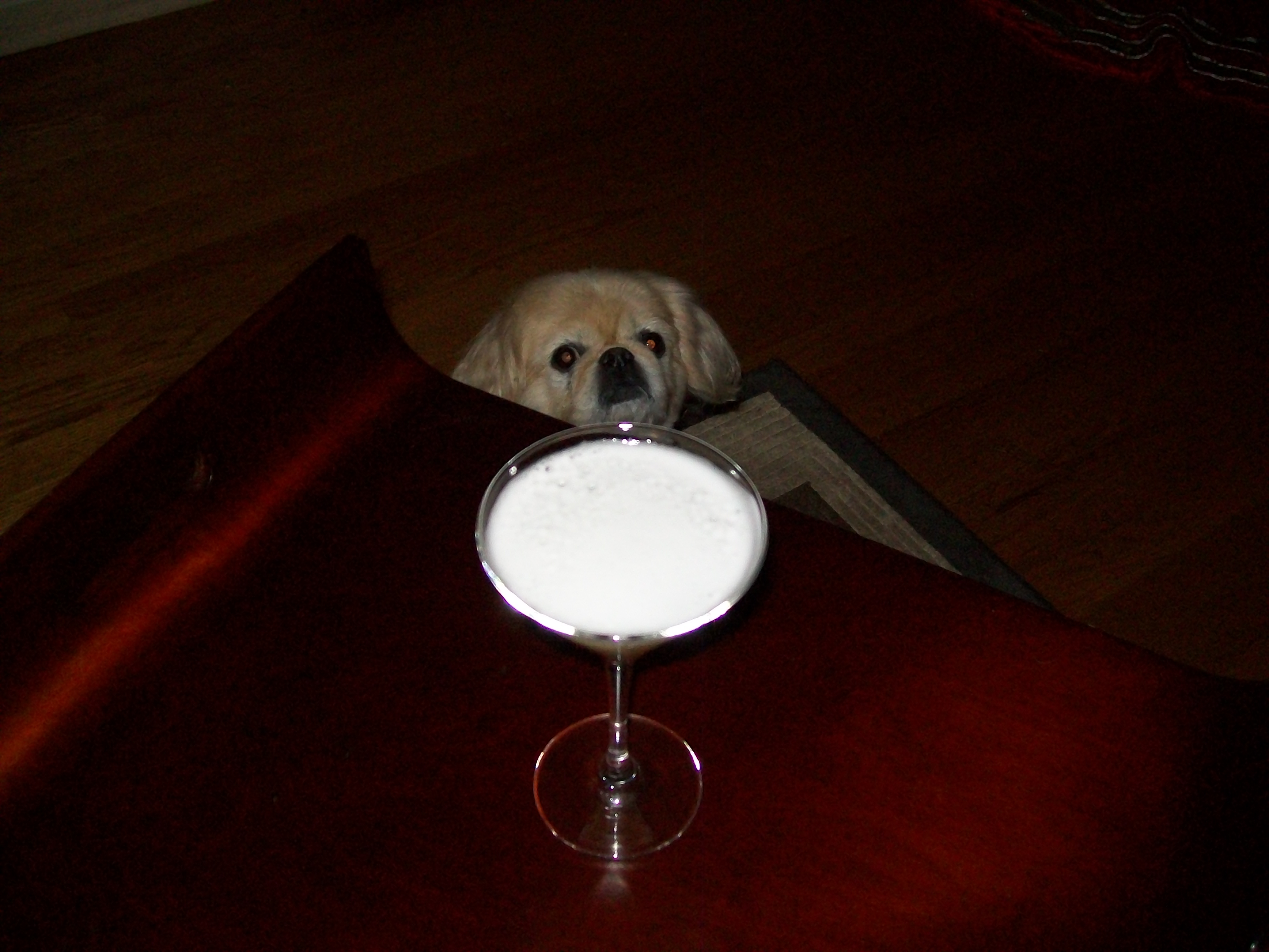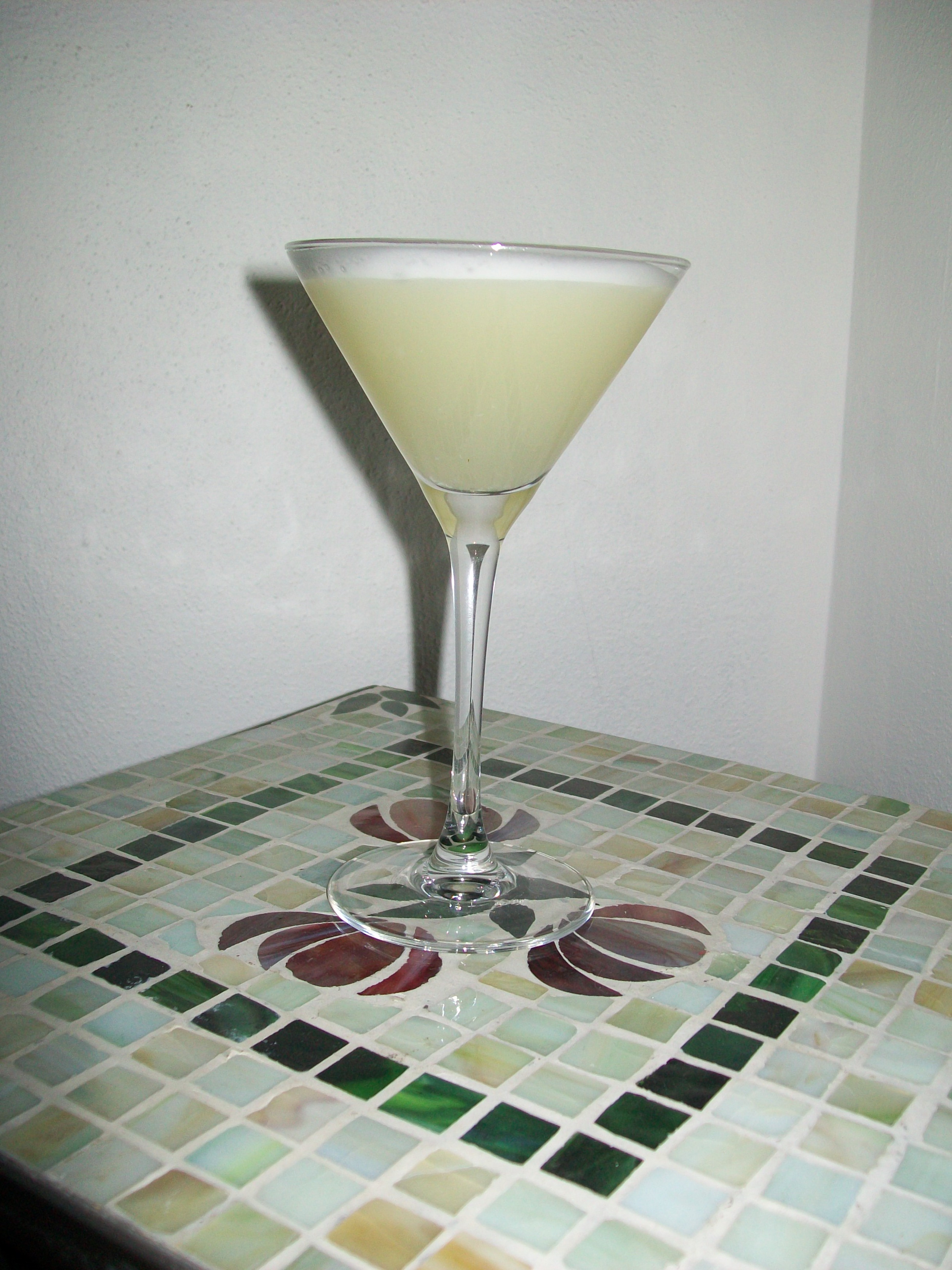 Pour 1/12 ounce of gin, 1/2 ounce each of cointreau (or triple sec) and lemon juice in a shaker half full with cracked ice. Separate egg yolk, and whisk the egg white with two teaspoons of sugar for a minute or two. Pour egg white mixture into shaker. Shake vigorously for at least a minute. Pour into a martini glass and serve. Optionally, garnish with a twist of lemon, or if you have the time or happen to have one on hand, a meringue cookie!