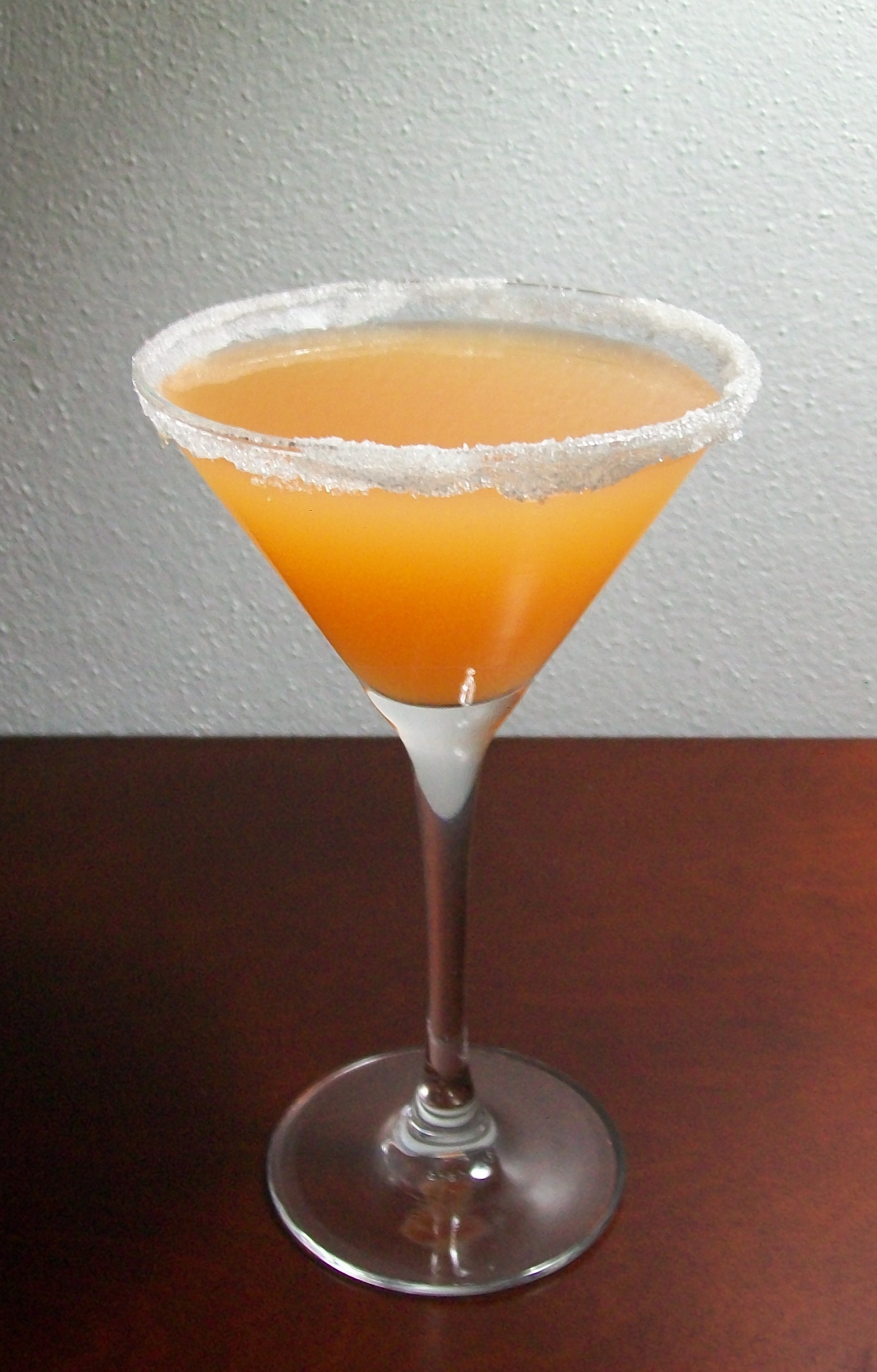 Lightly coat your cocktail glass with lemon or lime juice and rim with sugar. In a shaker over cracked ice, pour in 2 ounces of vodka, 1 1/2 ounces of dry vermouth, 1/2 ounce of cointreau, and 2 ounces of orange juice. Toss in a dash of grenadine, and then shake vigorously. Strain into your cocktail glass. Alternatively, you may garnish with a slice of orange.