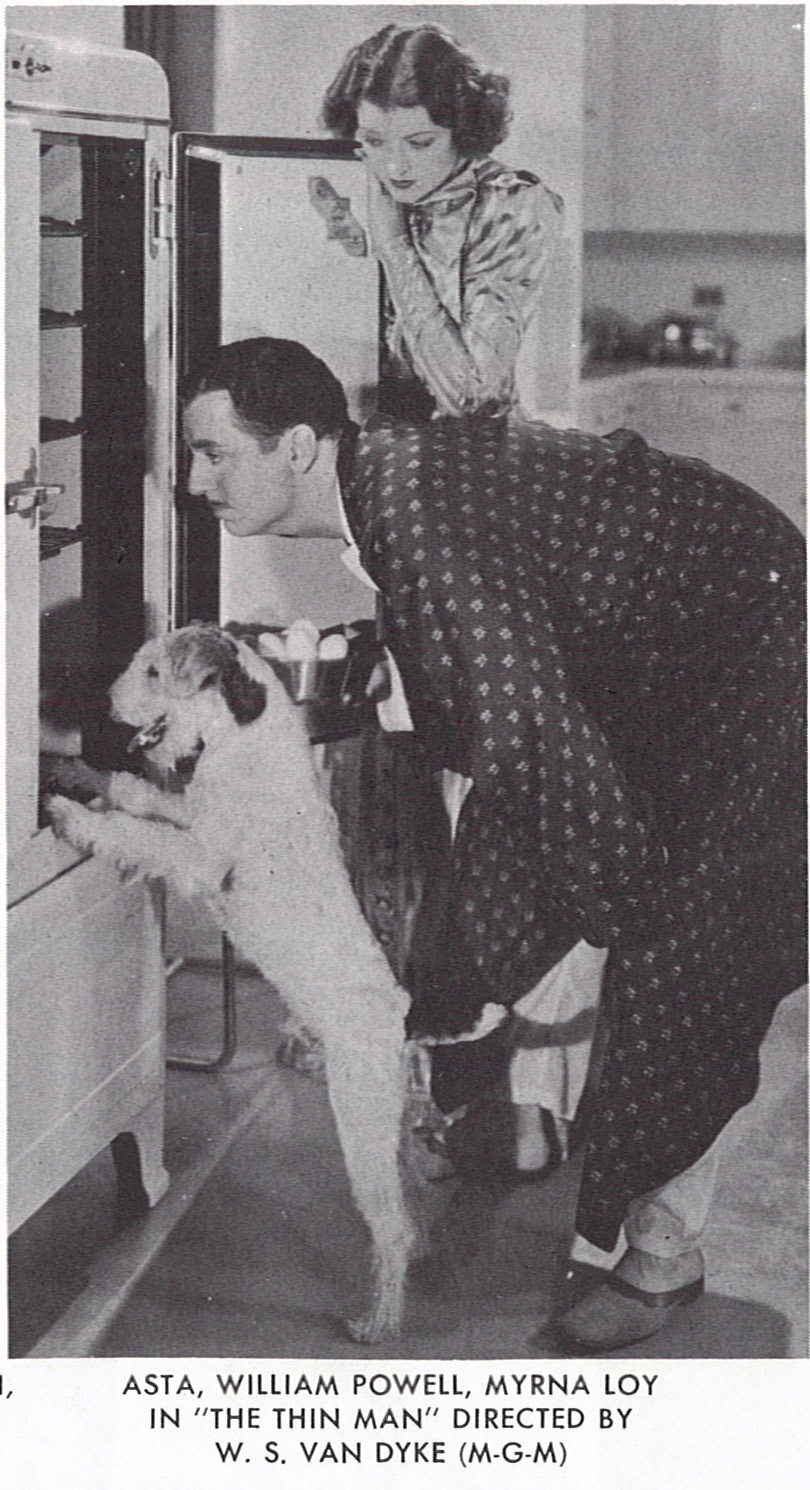 Then Nora enters, dragged along by that famous fox terrier, Asta. She’s introduced to Dorothy and the girl’s finace, Tommy, who both leave shortly after. She asks her husband about them, but he’s playfully evasive. “Say, how many drinks have you had?” asks Nora, beofre matching her husband drink for drink.