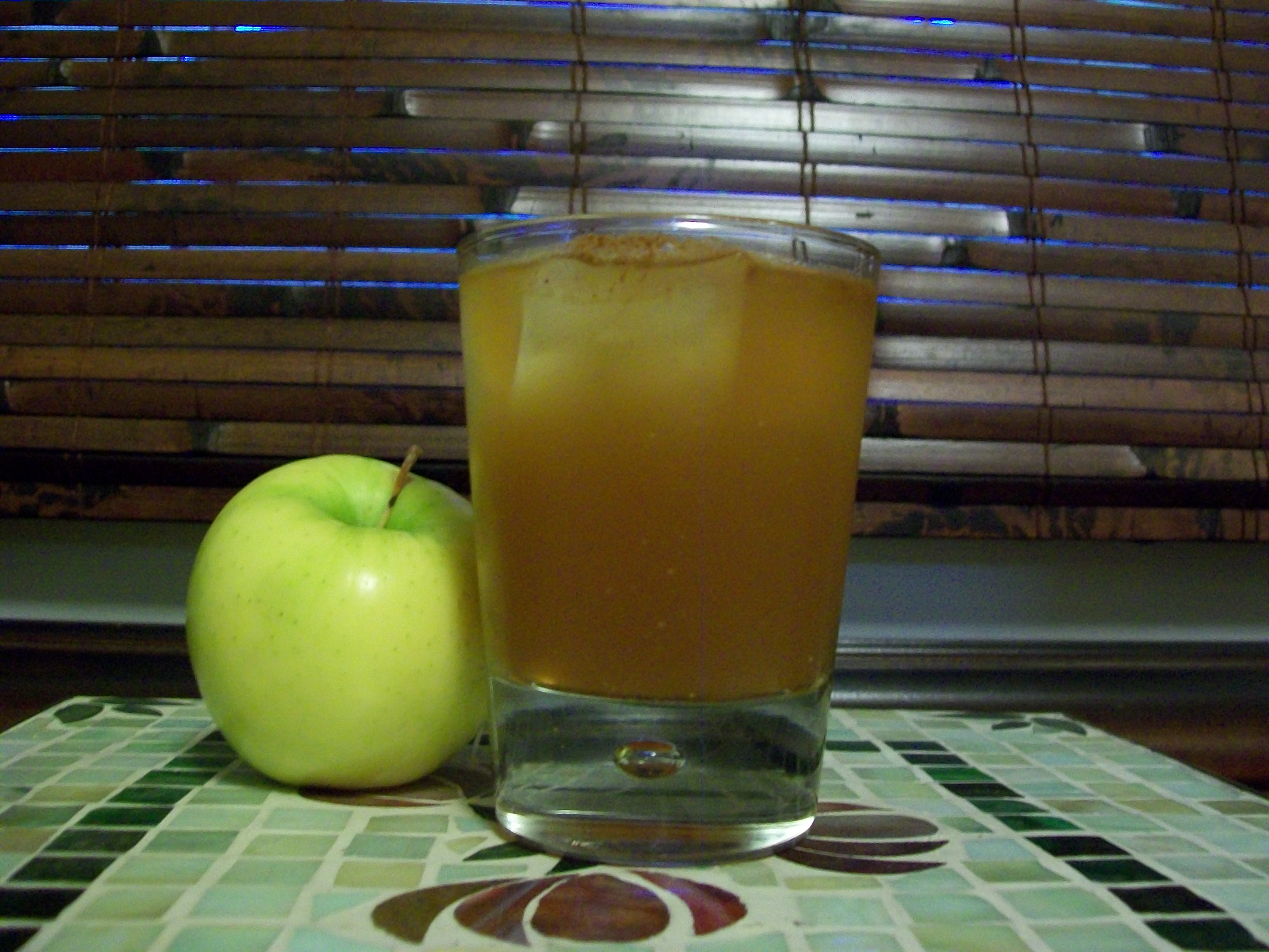 This drink could also be served hot. Add whiskey and cider in a sauce pan, add cinnamon (optionally add cloves or nutmeg), then heat to a near boil and serve in a mug.