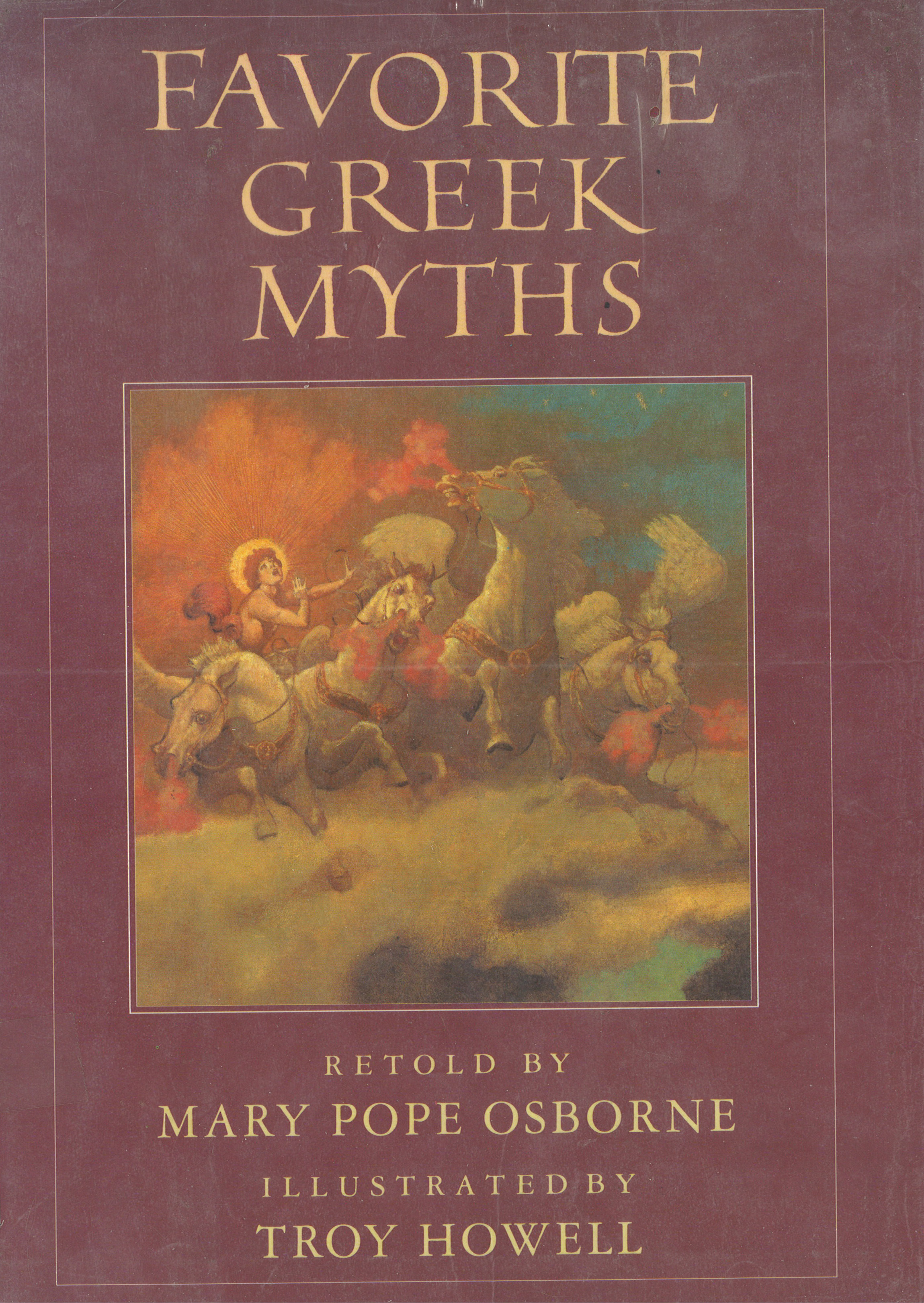 Mary Pope Osborne published her collection, Favorite Greek Myths, in 1989. Presented within are a dozen stories. Nearly all are derived from the Roman poet Ovid’s Metamorphoses, as the author states in her introduction.