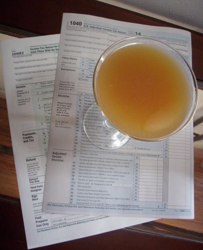 April 15th. By now, you’ve filled your taxes–hopefully–so it’s time to enjoy this cocktail special, an Income Tax cocktail!