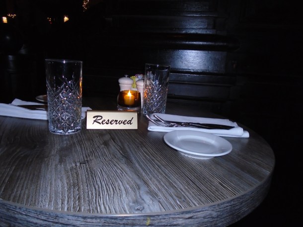A small round table set for two sits in a corner of a darkened restaurant, bar, or lounge. Especially reserved, but for who? Surely it’s not for a lone individual; there are two settings. Perhaps it’s for an elderly couple celebrating a milestone or a younger couple facing a new beginning. Or will one diner arrive and await the other? Will the awaited for party arrive? Maybe it is a table for one after all, and that person reflects on the loss of another.