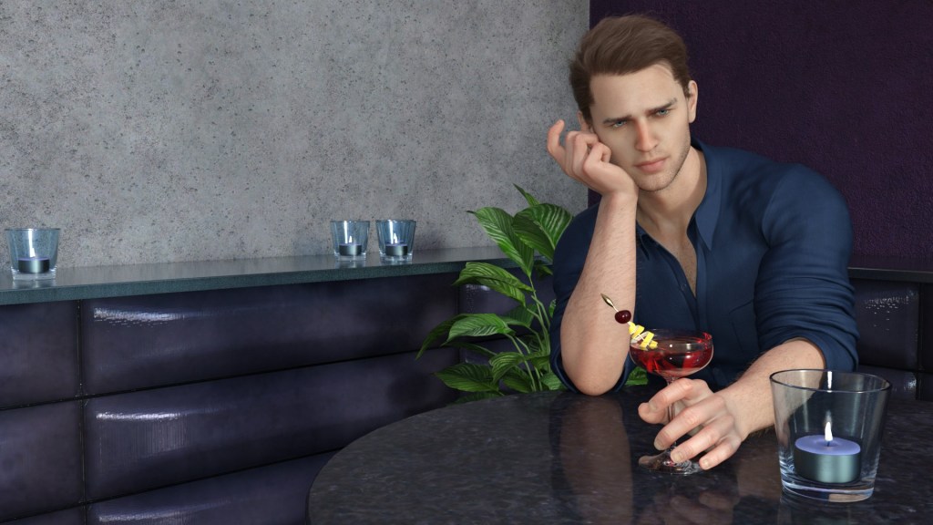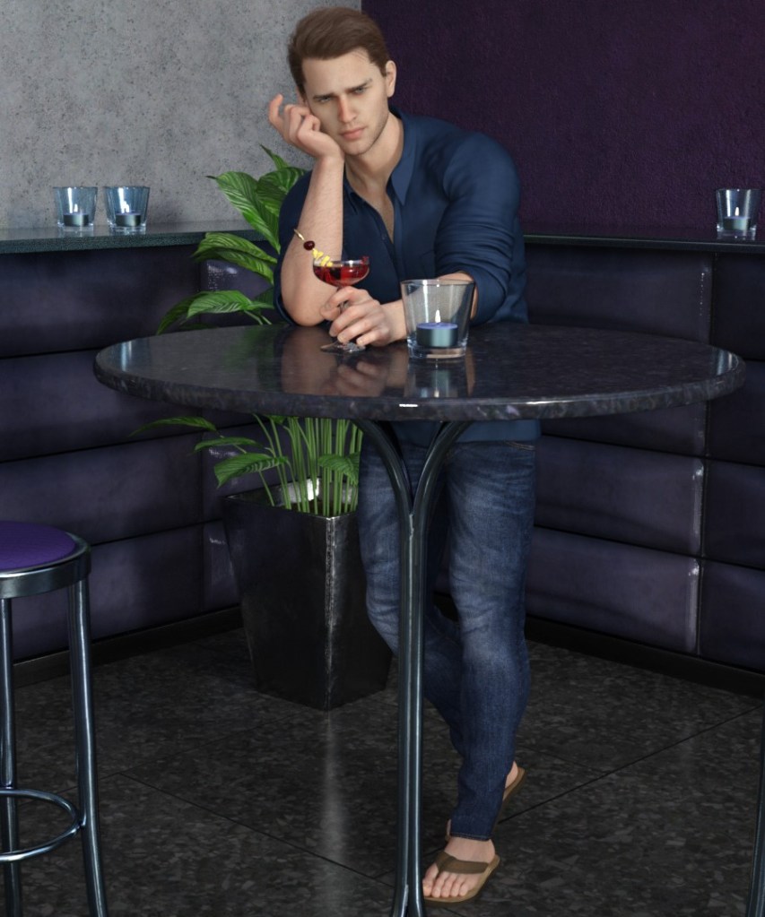 The images accompanying this post are my first attempt at bridging text and visual representations of a character. The rendering was done using Daz Studio. Learning to manipulate digital assets to bring my characters and scenes to life has been an interesting experience. My hope is to craft a visual novel based on my Syracuse Mystery series for readers to experience. This young man alone at the bar is likely to be a featured character.